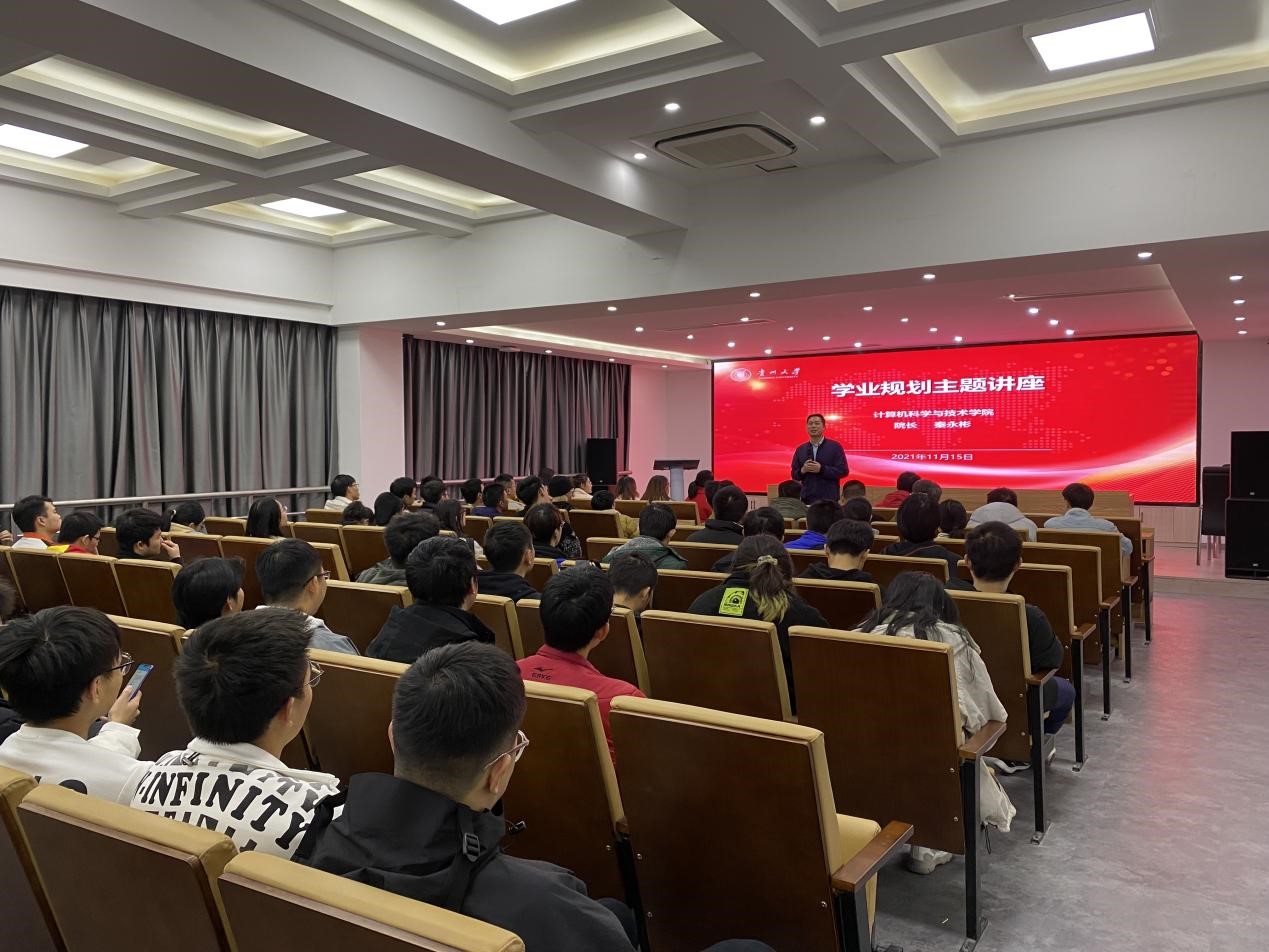 团委网站讯(记者陈寒梅 报道|摄影 李微微 姜维)为加强龙8-long8(头号玩家)国际唯一官方网站学生思想引领和心理疏导,帮助学生树立正确的人生观和成才观,从而科学地做好学业、就业规划,2021年11月15日晚上19:30,龙8-long8(头号玩家)国际唯一官方网站在东校区博学楼13楼会议室开展2020级软件工程专业学业规划主题讲座。本次讲座由院长秦永彬教授主讲,全体2020级软件工程专业同学参加本次讲座。