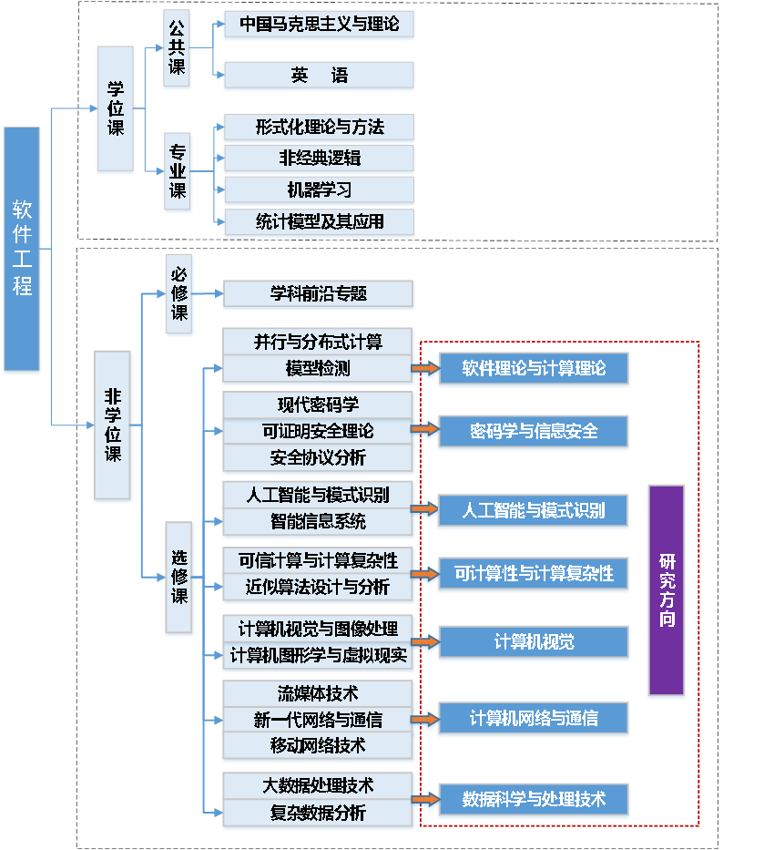 基于国内外软件工程、计算机科学领域的发展情况和贵州省的实际情况,在“瞄准国际发展、立足贵州省情、聚焦特色优势、服务产业需求”的理念指导下,学位点统一制定了《软件工程一级学科博士研究生培养方案》,培养方案包括软件工程理论与计算理论、软件安全工程与密码学、软件工程技术与人工智能三个研究方向,围绕这三个方向,形成了大数据安全与隐私保护科研团队、文本计算与认知智能科研团队、大数据技术与互联网应用科研团队、数据安全与网络安全科研团队、智能医学影像分析与精准诊断团队、人工智能科研团队、先进计算与数据工程科研团队、嵌入式与物联网科研团队。