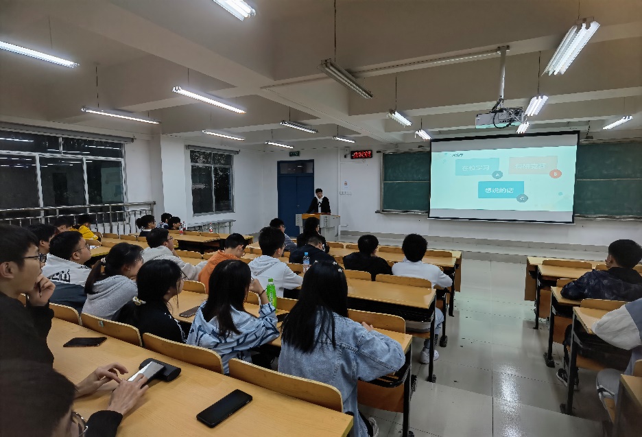 2018级王琦同学分享了专业学习、社会实践、发展规划等方面的经验。他鼓励同学们面对成绩,一定保持良好乐观的心态。此外,他还建议学业之余要积极参与社会实践,在实践中验证所学、所思、所获,积极提升自我。