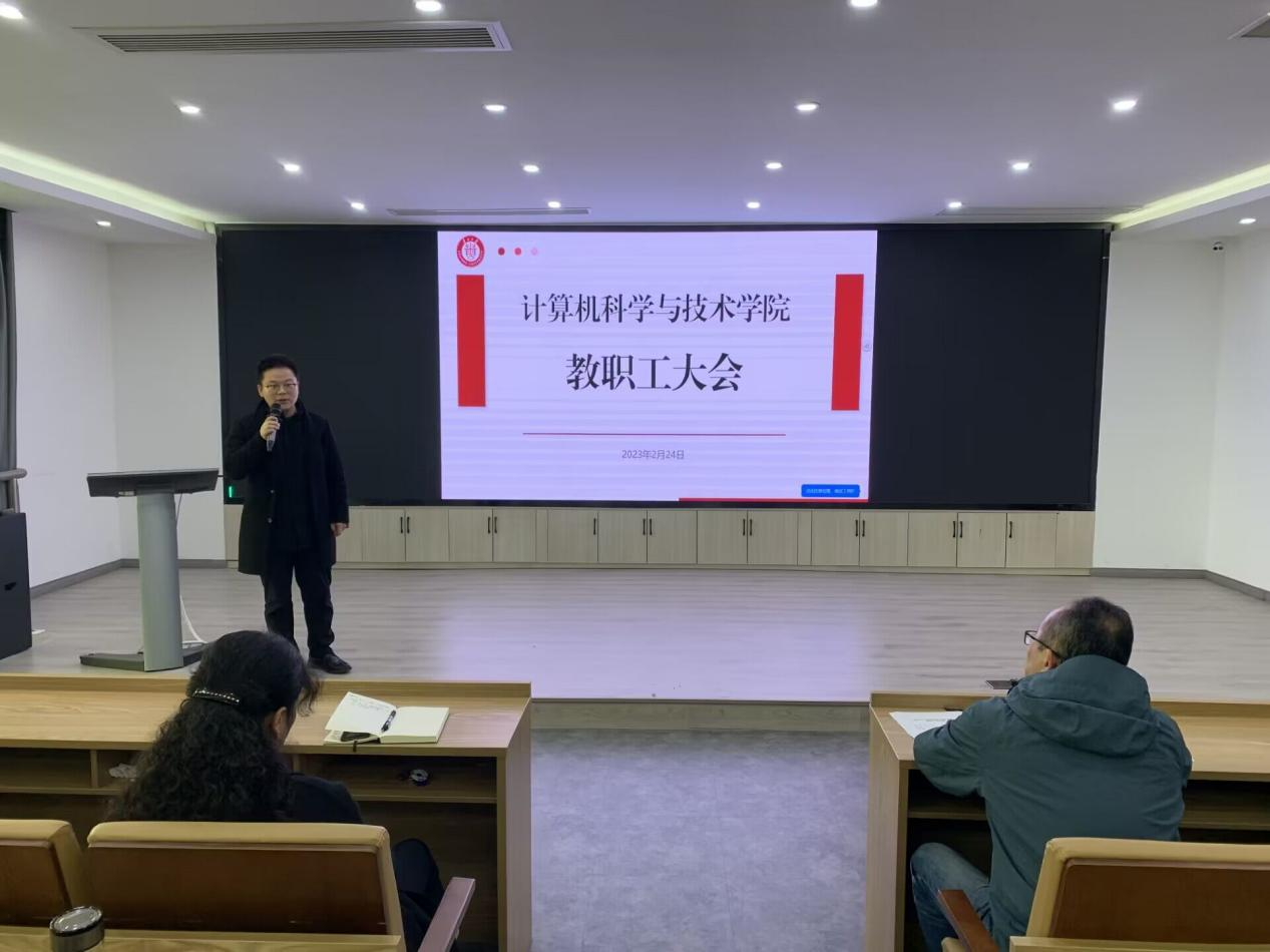 2月24日下午,龙8-long8(头号玩家)国际唯一官方网站在博学楼13楼会议室召开2023年春季新学期教职工大会。龙8-long8(头号玩家)国际唯一官方网站党政领导班子全体成员和全体教职工参加大会。会议由院党委副书记何飞主持。