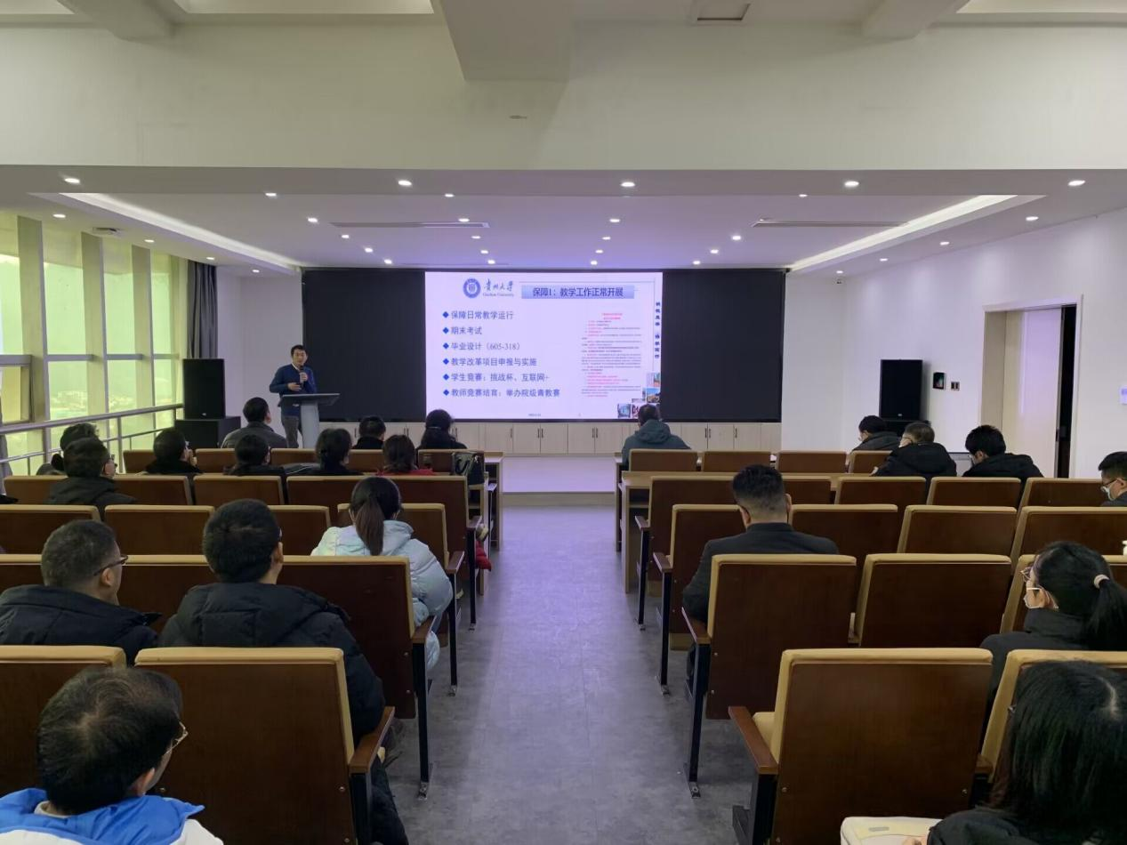 院长秦永彬传达学校2023年春季学期工作会议精神和2023年贵州大学工作重点。他围绕学习贯彻党的二十大精神,以“立足贵州大地,提质增效,推动高质量发展”为题,从龙8-long8(头号玩家)国际唯一官方网站师资队伍、科研工作、学生培养、社会服务等方面对龙8-long8(头号玩家)国际唯一官方网站的发展进行分析,并对2023年的学科建设等工作进行安排部署。他强调,今年是全面贯彻落实党的二十大精神的开局之年,龙8-long8(头号玩家)国际唯一官方网站要认真学习贯彻党的二十大精神,围绕“四新”主攻“四化”,聚焦人才培养、学科建设、科研创新、社会服务等方面抢抓发展机遇,以更加有为的态度、更加务实的作风、更加昂扬的斗志,全力推进龙8-long8(头号玩家)国际唯一官方网站高质量发展。