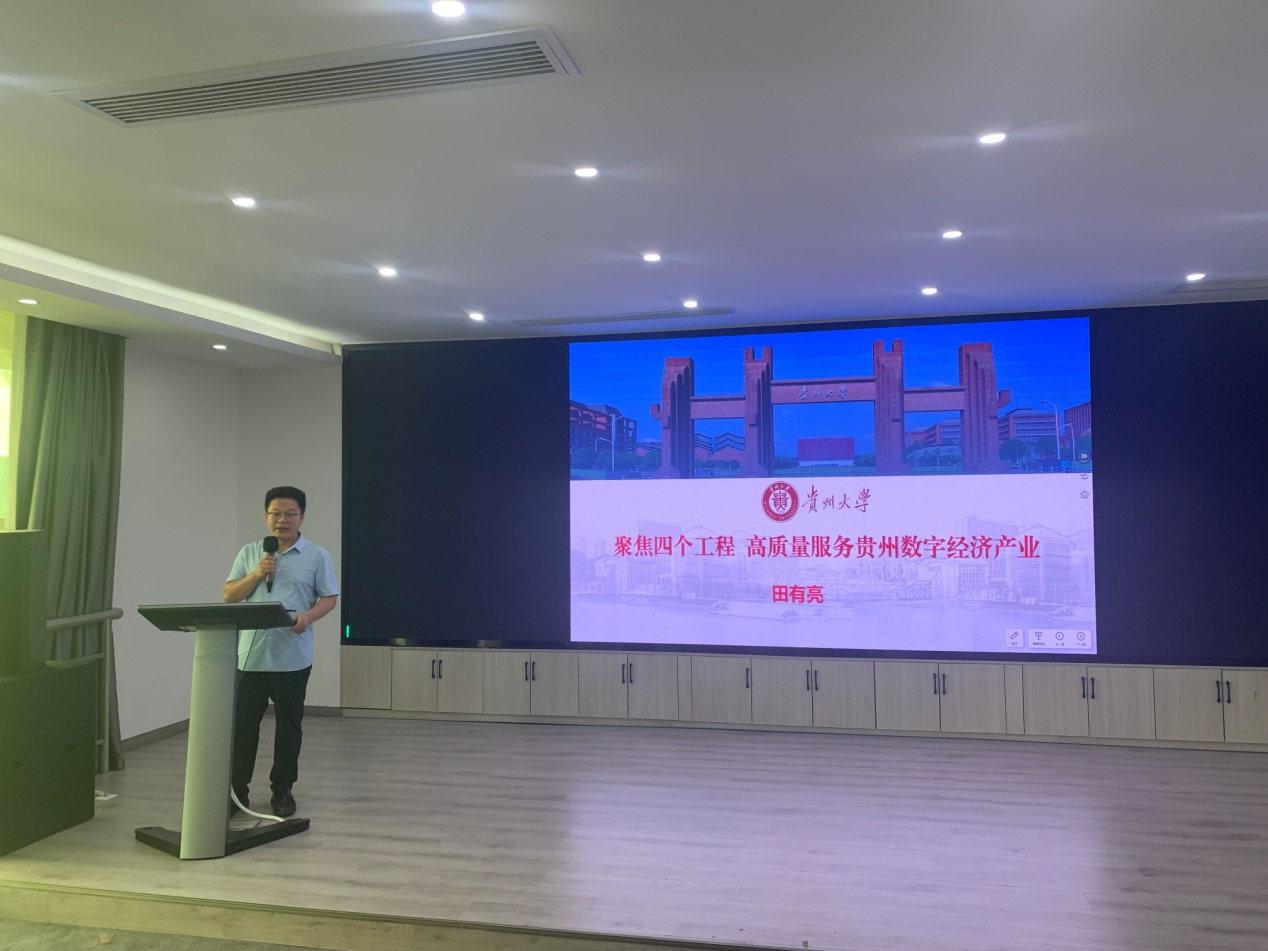 田有亮从“聚焦四个工程高质量服务贵州数字经济产业,怎样安全、健康、有效地发展数字经济,关于破解数据流通交易困局的思考,关于走好新型工业化之路的思考”四个方面广大党员讲授一堂生动的党课。