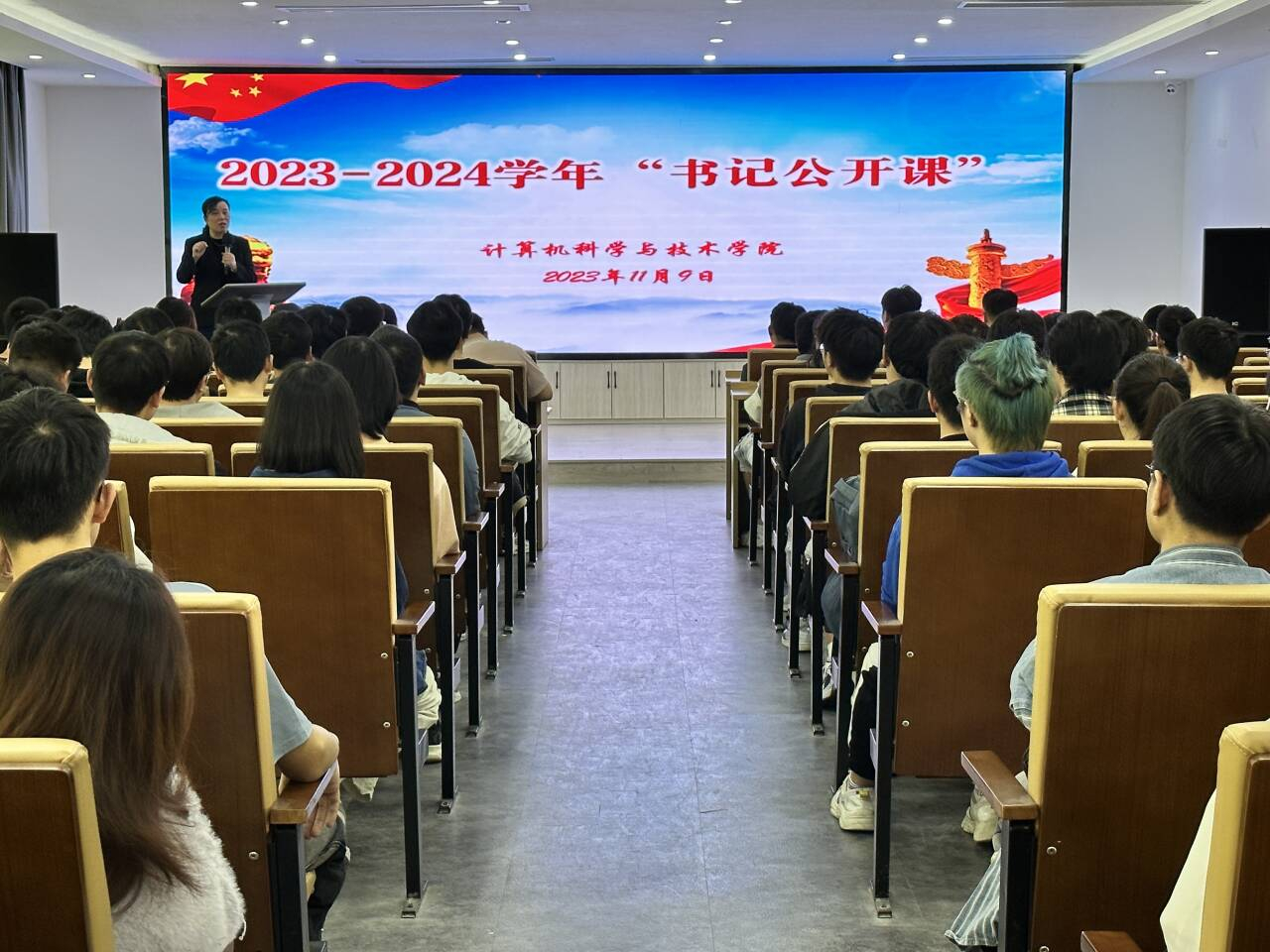 2023年11月9日,龙8-long8(头号玩家)国际唯一官方网站党委书记龙慧云以“青春是用来奋斗的”为主题,在博学楼13楼报告厅为200余名2021级软件工程专业学生讲公开课。龙慧云勉励2021级学生奋斗青春,积极实现自我成长。