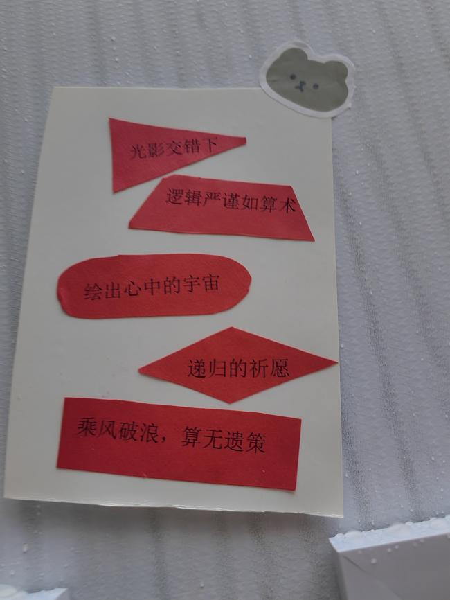 活动以“拼接诗”的形式,通过计算机专业独特的描述标签,让同学们根据内容裁剪下来,重新组合成一首短诗并共同参与展板制作。