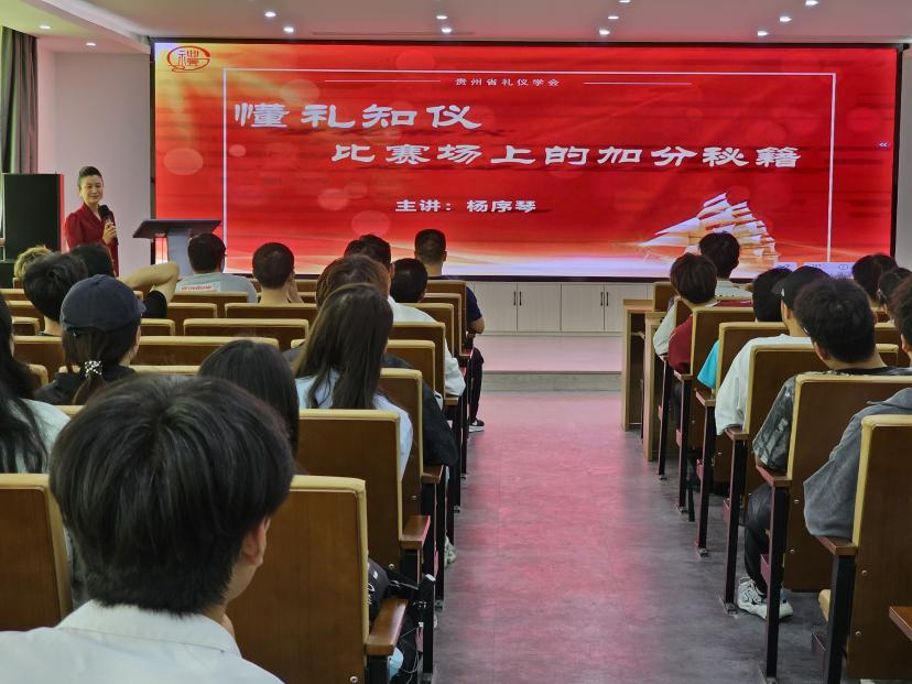 贵州省礼仪学会会长、旅游文化与产业龙8-long8(头号玩家)国际唯一官方网站副教授杨旭琴老师为参赛学生培训比赛礼仪