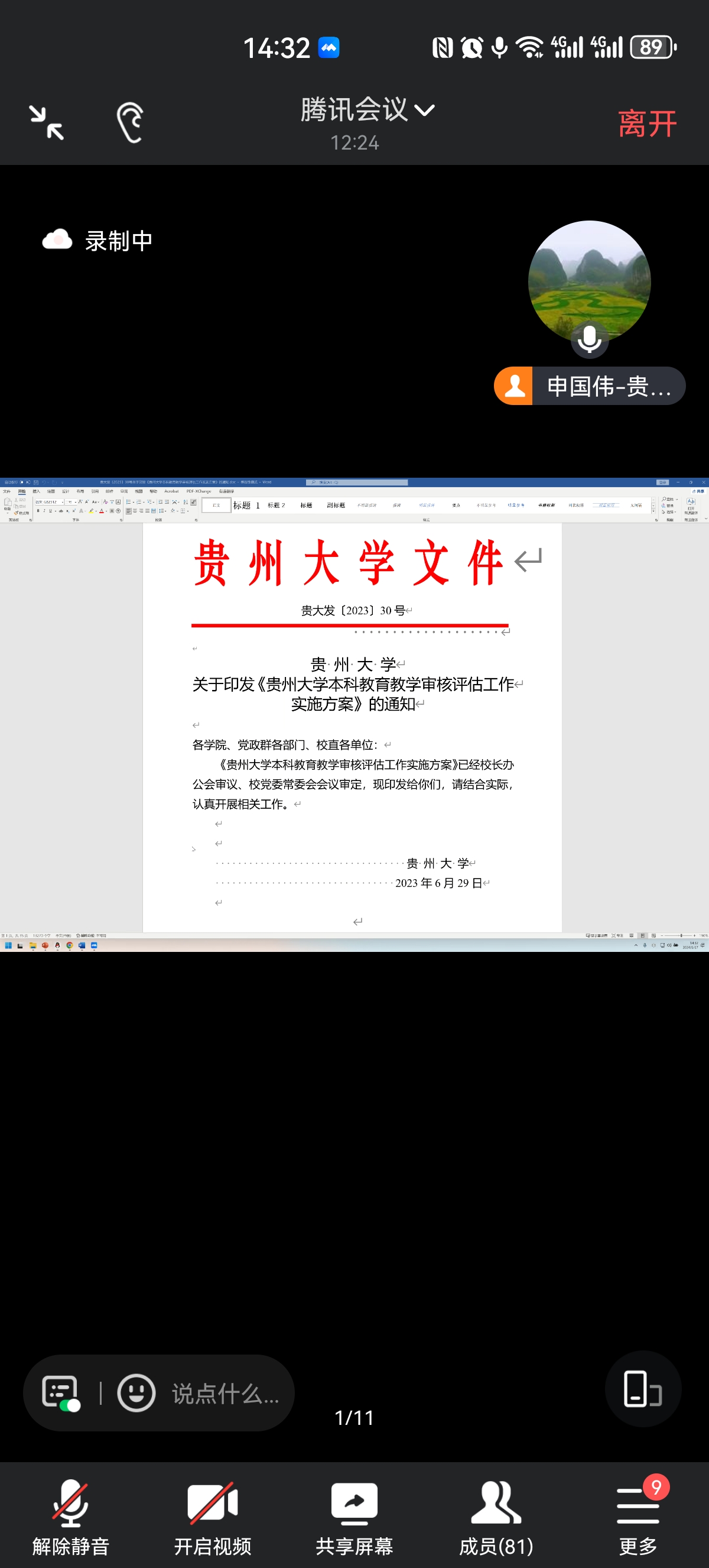 1月17日14:30,副院长申国伟线上面向全院教职工大会作本科教育教学审核评估工作讲解。