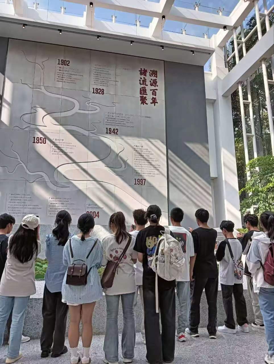 随后,同学们前往中华文化书院参观,重温了习近平总书记考察贵州大学时的重要讲话精神,同学们深受鼓舞,纷纷立志以自身所学知识与社会实践相结合,把论文写在祖国大地上,为实现中华民族伟大复兴而不懈奋斗。参观结束后,同学们在校史馆、中华文化书院入口处合影留念。