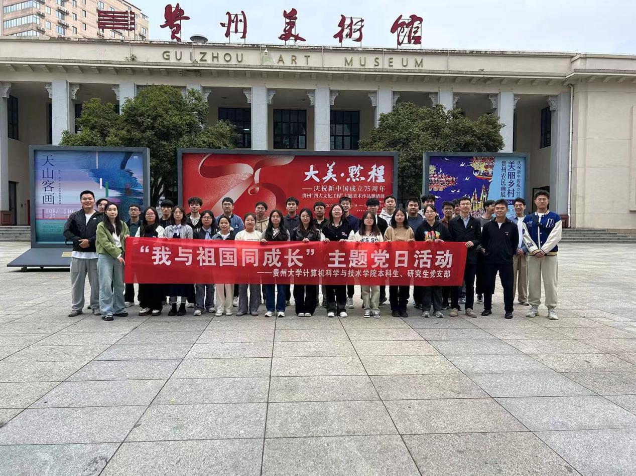 为庆祝中华人民共和国成立75周年,深入学习贯彻党的二十届三中全会精神,进一步激发和弘扬党员爱国情怀和奋斗精神,龙8-long8(头号玩家)国际唯一官方网站本科生党支部、研究生党支部和东校区14A楼栋党总支于10月10日下午,在贵州美术馆联合开展了以“我与祖国同成长”为主题的党日活动。