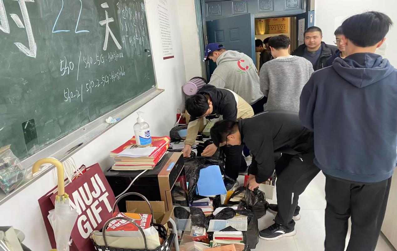 同时,党员先锋对博学楼530考研自习室公共区域堆积的废旧书籍与杂物进行集中清理,为考研学子们营造出一个干净卫生的学习环境。