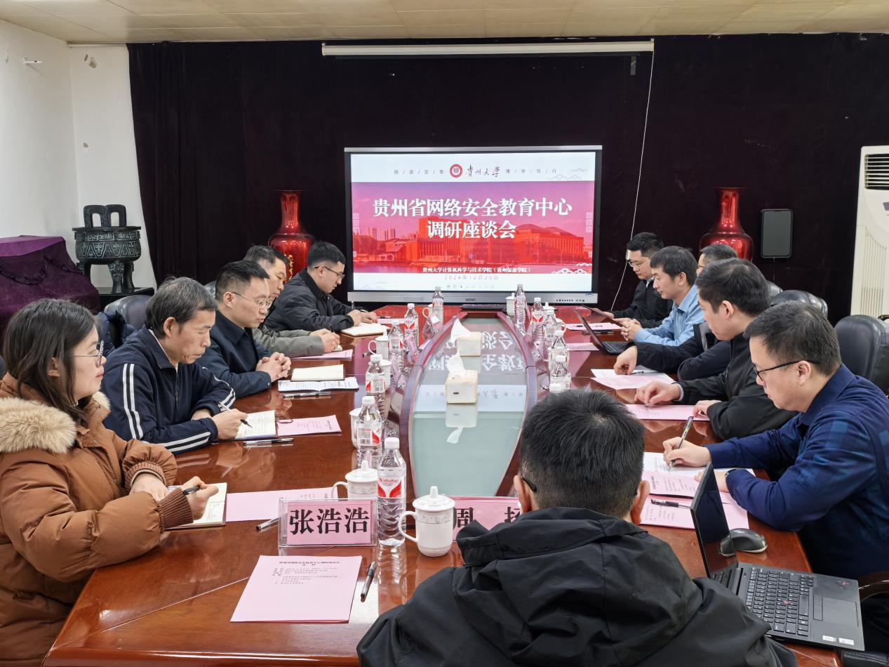 12月20日,贵州省委网信办副主任陈进,贵州省教育厅信息中心副主任李军一行5人来校开展省网络安全教育中心调研。贵州大学党委常委、副校长李飞出席,奇安信集团贵州分区总经理吴剑,贵州大学龙8-long8(头号玩家)国际唯一官方网站(贵州保密龙8-long8(头号玩家)国际唯一官方网站)院长秦永彬、贵州省网络安全教育中心及奇安信集团相关负责人参加会议。陈进主持会议。