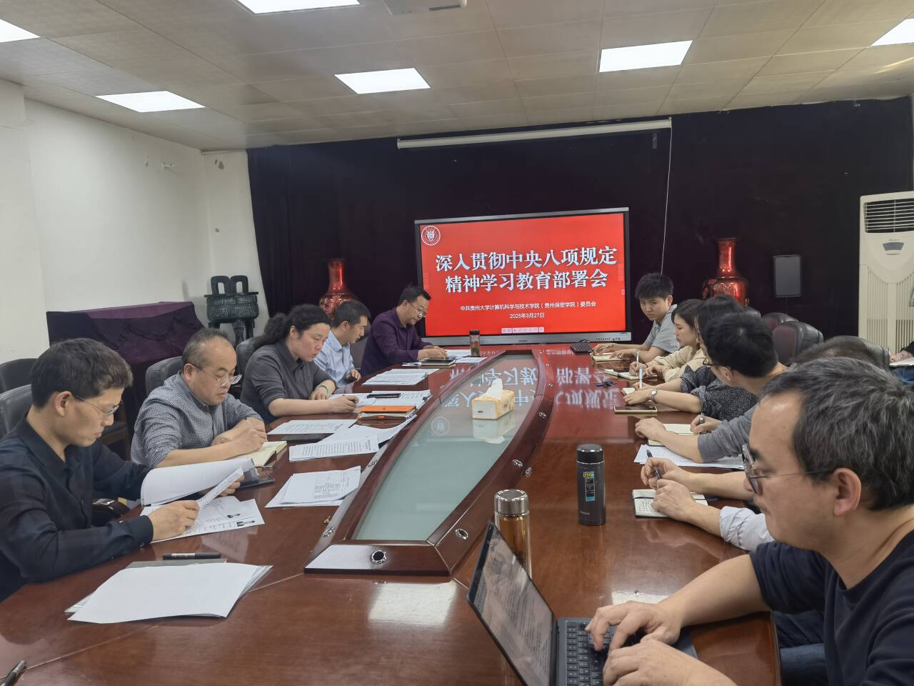 会议学习了习近平总书记关于贯彻落实中央八项规定精神、加强党的作风建设的重要论述,传达学习了中央党的建设工作领导小组会议精神,省委党的建设工作领导小组会议精神和校党委建设工作领导小组会议精神。审议并原则通过了《中共龙8-long8(头号玩家)国际唯一官方网站(贵州保密龙8-long8(头号玩家)国际唯一官方网站)委员会关于开展深入贯彻中央八项规定精神学习教育的工作计划》。