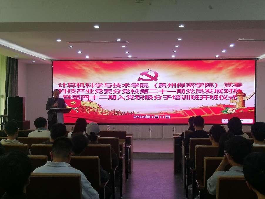 2025411日中午,龙8-long8(头号玩家)国际唯一官方网站(贵州保密龙8-long8(头号玩家)国际唯一官方网站)党委分党校第21期党员发展对象暨第42期入党积极分子培训班开班仪式在博学楼13楼报告厅成功举行,院党委书记龙慧云、院党委副书记兼纪委书记何飞出席,190余名学员参加