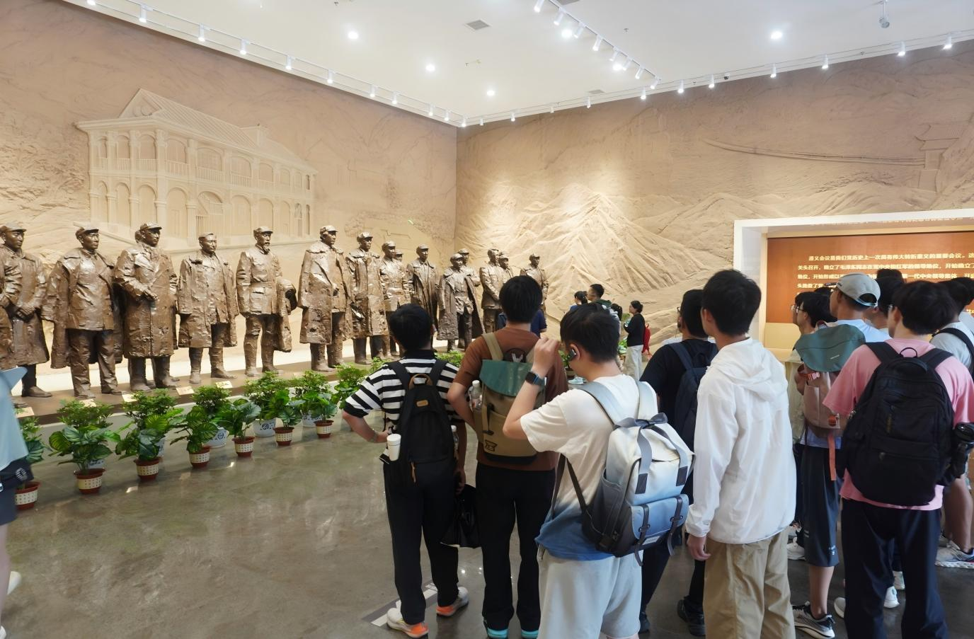 青砖灰瓦的二层小楼庄重肃穆,木质楼梯回响着历史的足音。实践队走进遵义会议会址,在这决定中国革命走向的转折之地重温光辉历程。展厅内陈列的会议长桌,无声诉说着那段力挽狂澜的伟大抉择;毛泽东同志旧居简朴而宁静,一桌一床仍保留着当年的风貌。队员们驻足凝视、认真聆听,在一件件珍贵文物与一段段史实介绍中,深刻体悟实事求是、独立自主的会议精神。